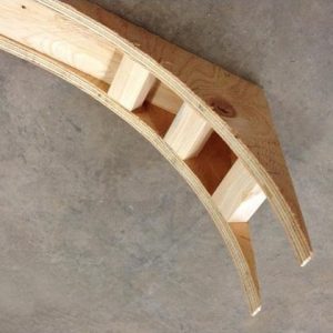 Дугу арки на этот раз придется рисовать на куске фанеры. А выпиливать с помощью все того же лобзика. Потом, используя саморезы (5 см), на получившейся форме закрепляются бруски, на которые возложена «роль» каркаса сооружения. Саму будущую арку в проеме нужно будет установить на более длинные саморезы, с шагом в 15 см.