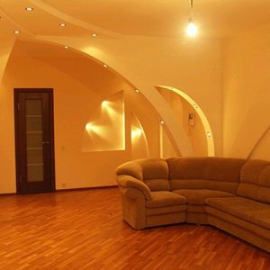 На отделку можно брать акриловую шпатлевку для внутренних работ, но швы поверхностей из гипсокартона лучше заделывать специальным прочным составом — это предотвратит образование трещин. В результате должна получиться идеально ровная поверхность, поэтому особое внимание надо уделить заделыванию шляпок саморезов (и учитывая это, саморезы необходимо вкручивать вровень с поверхностью гипсокартонного листа, чтобы не было ни ямок, ни трудно заделываемых выпуклостей), а также уборке обрывков бумажек и выравниванию дефектов на самом листе. Арка не просто должна быть ровной по всем своим поверхностям, она также должна находиться строго вровень с поверхностями проема — на толще, ни тоньше, без всяких бугров.