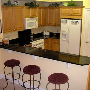 Рассматриваемые конструкции изготавливаются и из натурального камня, но они, конечно, наиболее уместно будут смотреться в кухнях с большой площадью. Отличным материалом для барной стойки станет полированный гранит – этот материал не боится горячего, острого и холодного.