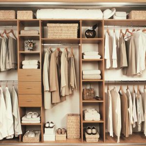 Вообще, лучше всего составить список и схему будущего хранения вещей в гардеробной, тогда и высоту полок можно будет рассчитать максимально точно, а также ширину и глубину ниш.