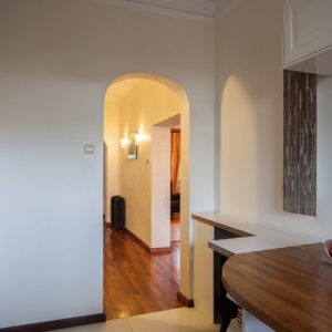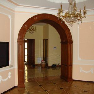 - Любой проект, связанный с отсутствием дверного полотна или отступлением от проемного стандарта в размерах, требует тщательности в отделке и комплексного подхода. Нельзя качественно оформить верх, но не позаботиться о низе. Следует предусмотреть правильные стыки напольных покрытий, озаботиться созданием единой визуальной картинки, без разнобоя в цветах и фактурах.