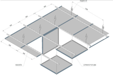 В основе любого кассетного потолка лежат модули, как раз и называемые «кассетами» или «кассетонами». Как правило, кассеты имеют квадратные формы, но некоторые производители выпускают и прямоугольные модули.