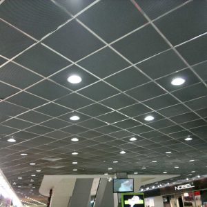 Любая кассетная система, будь то витражный потолок, панели из гипсокартона, металлическая или деревянная конструкция, потребует установки осветительных приборов. А значит над оформлением электропроводки придется задуматься еще на стадии обустройства профильной сетки. Монтируются же светильники одновременно с декоративными потолочными кассетами.