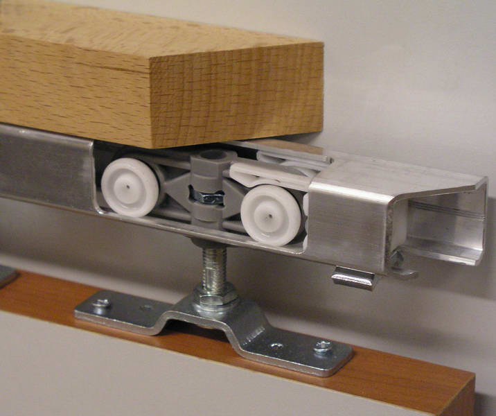 Установка раздвижных дверных конструкций требует тщательного выравнивания стен и пола. Механизм подходит для любых дверей, толщина которых превышает 2,5 см. Если дверь весит более 75 кг, то необходимо использование четырех роликов. В других случаях используется только два ролика.