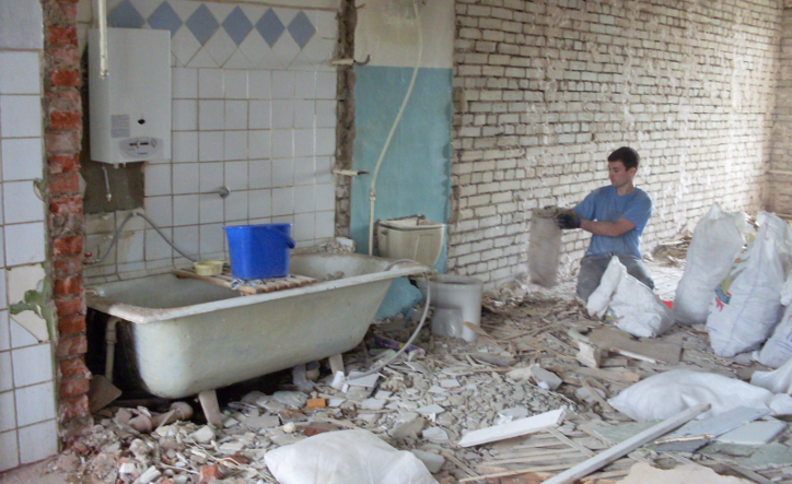 Обратите внимание: выбрасывать строительный мусор в контейнеры с бытовыми отходами категорически запрещено законодательством, поэтому целесообразно в день демонтажных работ вызвать мусоровоз.